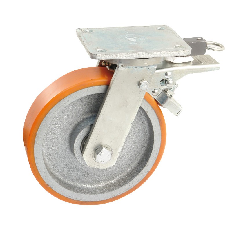 Roulette Mecano-Soudee...Roulette Mecano-Soudee Pivotante A Frein A Blocage Directionnel, Roue Fonte Bandage Polyurethane Diametre 250, Charge 1 500 Kg
